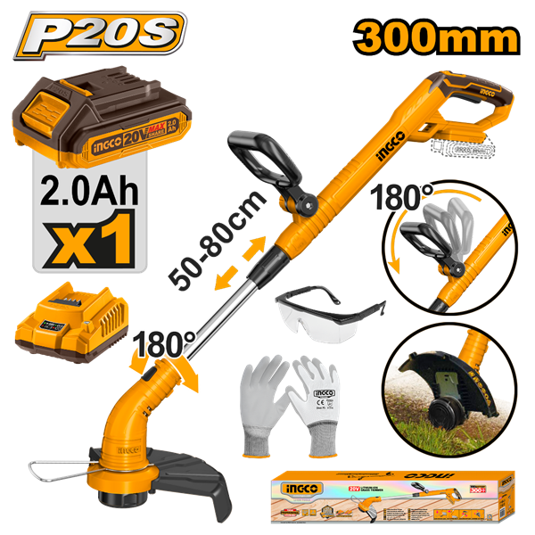 BORDEADORA A BATERIA 20V C 1 BAT Y CARGADOR P20S MANGO REG INGCO CGTLI20301