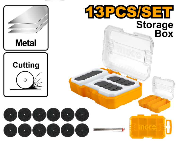 SET 13PCS ACCESORIO MINI TORNO METAL -Tamaño del mango:1/8 -12Pzs Disco de corte -1 mandril