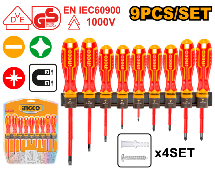 SET DE 9PCS DESTORNILLADORES AISLADOS EN BLISTER - HKISD0908 INGCO