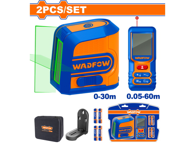 SET MEDICION NIVEL LASER VERDE 30 MTS (WLE2M03) + MEDIDOR DE DISTANCIA 60 MTS (WDL1516) INCLUYE SOPORTE WADFOW - WLDK1401