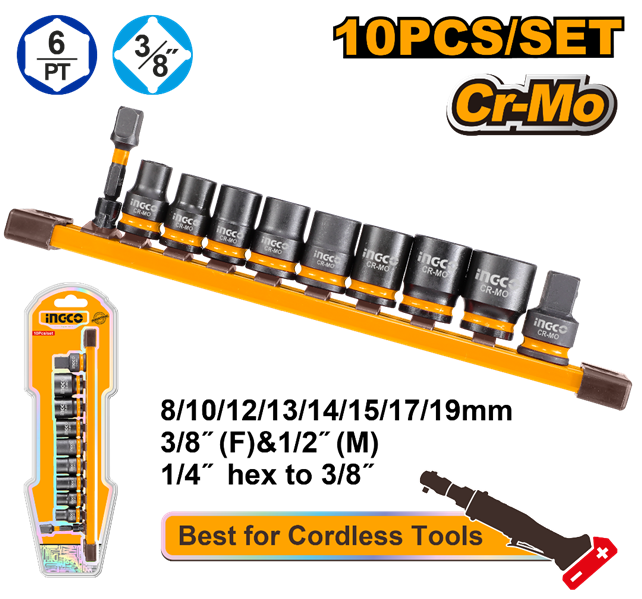 SET X 10 DADOS DE IMPACTO 3/8" INGCO HKISSD38104
