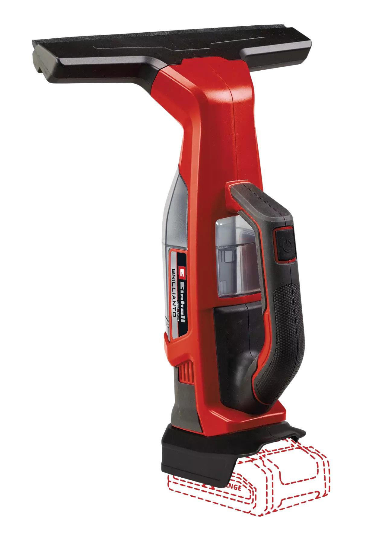 Ventanas limpiadas en un tris sin tiras - esto es el ejercicio más fácil para el limpiacristales con batería BRILLIANTO con batería de Einhell. Como parte de la familia Power X-Change, el limpiacristales inalámbrico puede combinarse con todas las baterías y cargadores. Limpiar ventanas sin cables sin interrupciones: Lo permiten el sistema de baterías extraíble Power X-Change y la tecnología de alta velocidad. Si la batería usada está vacía, puede cambiarse fácilmente por una llena - así no se le ponen límites a la duración. El limpiacristales con batería BRILLIANTO se envía junto con un pulverizador con volumen de 300 ml. En este se fija el paño de microfibras contenido en el alcance del envío para limpiar fácilmente superficies de cristal. Los restos del agua se recogen por el limpiacristales con ayuda de su boquilla de aspiración de 28 cm de largo. La interacción perfecta entre la boquilla y el labio nivelador de una pieza de silicona aporta resultados sin tiras - igual si se limpian las superficies de cristal en dirección horizontal, vertical o diagonal. Así el limpiacristales se vuelve un todoterreno y se usa no solo al limpiar ventanas, sino también en la limpieza de azulejos, duchas, mesas de cristal, cristales y ventanas en el coche, grandes frentes de ventana y mucho más. En el tanque de aguas sucias puede acumularse hasta 100 ml de líquido. El tanque debe retirarse completamente del equipo para el vaciado y limpieza. Con su diseño ligero y compacto con superficies especiales de agarre suave, el limpiacristales queda agradablemente en la mano sin correrse. Un interruptor on/off está equipado con una función de marcha permanente para trabajos de limpieza duraderos. El limpiacristales con batería se conserva fácil y ahorrando en espacio en el soporte de pared enviado. BRILLIANTO se proporciona sin batería ni cargador. Estos son adquiribles por separado, por ejemplo, como práctico set para principiantes. Como práctico accesorio para el limpiacristales con batería BRILLIANTO de Einhell están contenidos igualmente por separado un set de barras telescópicas para limpiar ventanas altas y un set de boquillas para limpiar superficies de cristal estrechas y grandes.