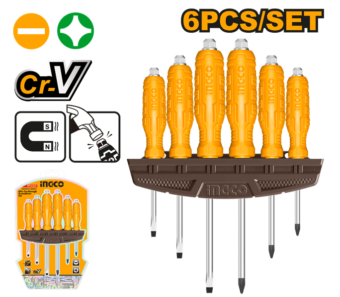 SET X 6 DESTORNILLADORES CRV IMANTADO PALETA/PHILLIPS INGCO HSGTDC180601